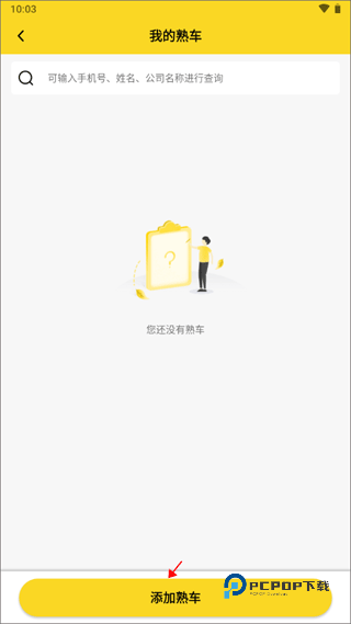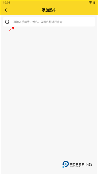 3、在输入框中输入手机号、姓名、公司名称来添加相应的熟车信息,找到之后一键添加即可。