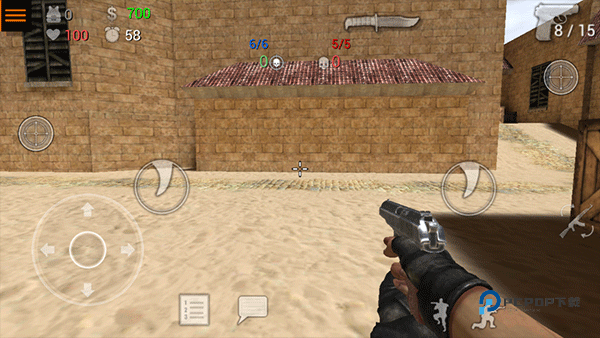 4、进入游戏后,你将以第一人称的视角进行战斗,左边控制角色移动方向,右边控制射击、换等操作;