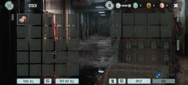 2、当玩家在一个箱子停下时,就可以点击右下方显示的拾取按钮,如果想要一键转移到背包里面,可以点击下方的“TAKE ALL”即可。