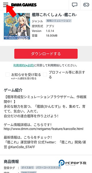 1、下载DMM游戏平台,点击左上角的三条横杠按钮;