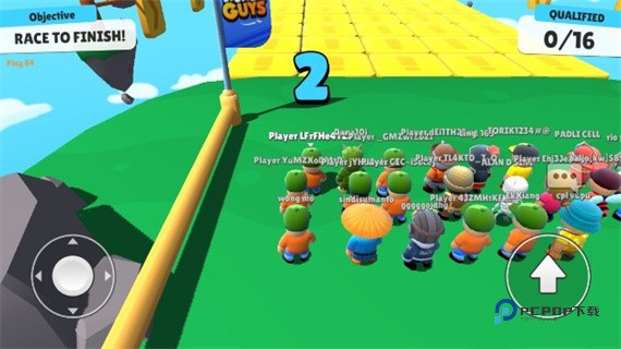 所有玩家出现在一个圆形的平台上,游戏开始后图中的粉色粗杆和绿色细杆会同时开始旋转,但两个杆子的旋转速度并不相同,使用跳跃躲避绿色的细杆之前注意上方粉杆的位置,被杆子击中后会被打入到旁边的粘液中,在平台上停留到最后即可获得胜利。
