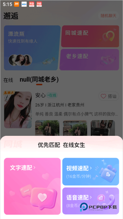 3、在显示出的页面当中选择一种速配方式并点击进入