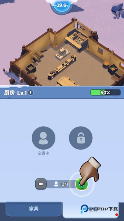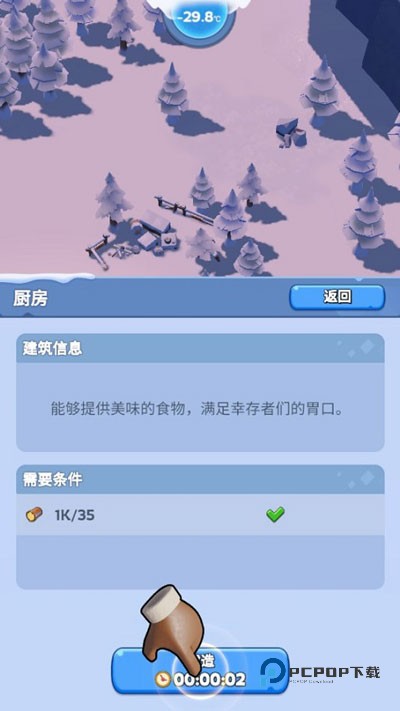 有了火种,解决了取暖问题,同样也可以解决生火做饭的问题。点击地图上的位置,打开建筑面板,先来建造一个厨房,为幸存者提供美味的食物。