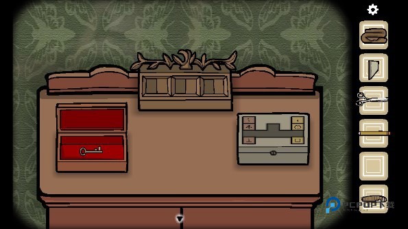 3、打开左边的盒子获得「钥匙」,移动旁边盒子上的方块到正确的位置,打开盒子后获得「照片碎片」,点击镜子穿上大衣,出现女人后来到门口