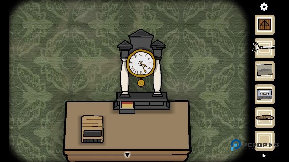 8、将时钟的时间拨到四点二十五,拿走暗格里面的「火柴」,来到镜子前,点击雪茄后用火柴点燃获得符号提示
