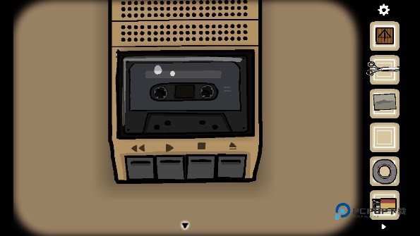 31、将磁带放入录音机,播放音乐后鸟笼打开,拿走鸟笼里的最后一个「铁块」,将三个铁块放入凹槽内打开下面的柜子后获得「红色药水」