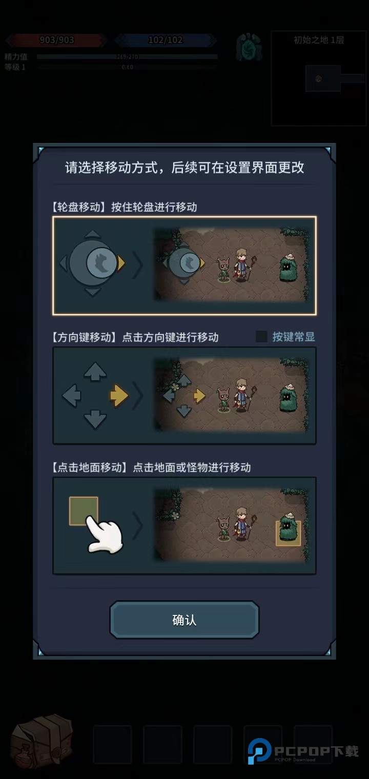 4、然后需要选择一种移动方式,一般来说是默认选择第一种的,不过如果玩家用的不舒服,可以在设置界面中更改;