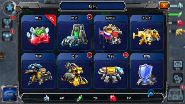2、在商店中交战各种武器炮台,防止被其他人攻击,有多余的资源在建造军队。