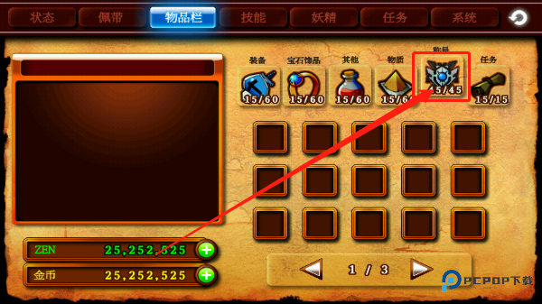 MISC,药品,其实很杂,回复药(POTION)、强化用的材料、精灵出来的符文石(RUNE)和技能石(SKILL STONE)都在这里