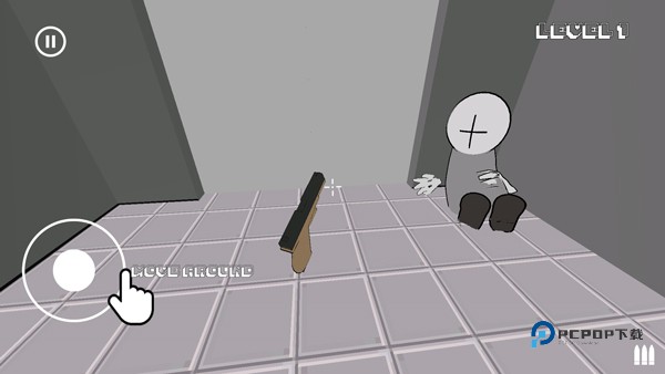 2、游戏采用第一人称视角,左侧轮盘控制角色移动;