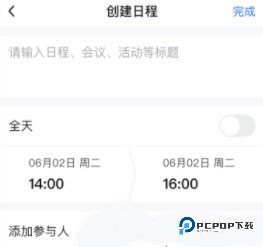 在日程创建页面,输入日程标题,同时选择日程的起始时间与结束时间,精准设置日程时段。