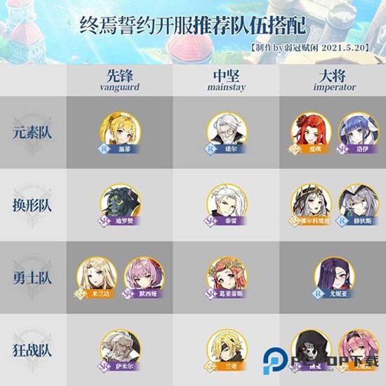 游戏设有先锋、中坚、大将三个职业定位,玩家可根据角色属性与技能效果,搭配出不同流派的阵容。以下为推荐阵容: