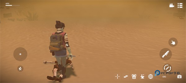 1、进入死亡荒地生存游戏后,左边按钮操控任务移动,右边为进攻;