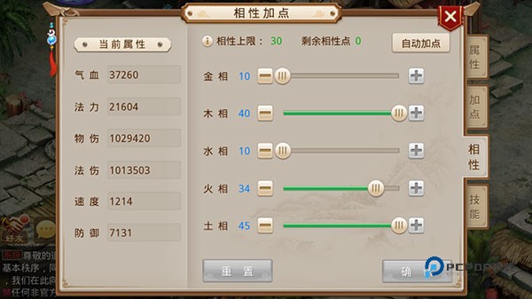 除了有一般游戏常见的属性加点系统外,问道还有独创的相性加点,相性加点会影响角色的五行相性,相性加点和属性加点的任意多种组合让玩家可 以任意选择自己的成长路线。