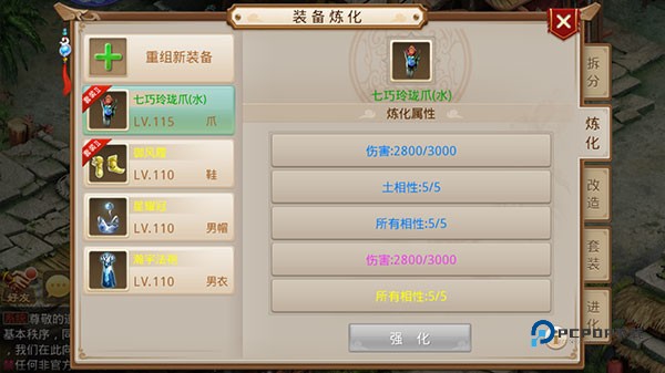 装备属性种类多达40多种,玩家可任意组合装备上的属性,并可进行进化、改造、炼化、套装等多方面养成。