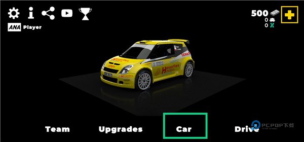 1、进入《终极拉力赛3》手游,在主界面中找到并点击【Car】按钮,进入车辆改装界面。