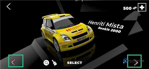 点击“<”或“>”按钮,切换浏览不同的赛车,找到你想要改装的车辆后,停留在该页面。
