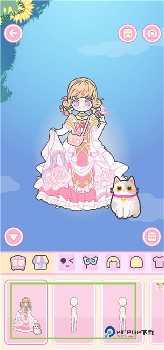 游戏内有多款风格服饰,如公主礼服,或日常休闲服。