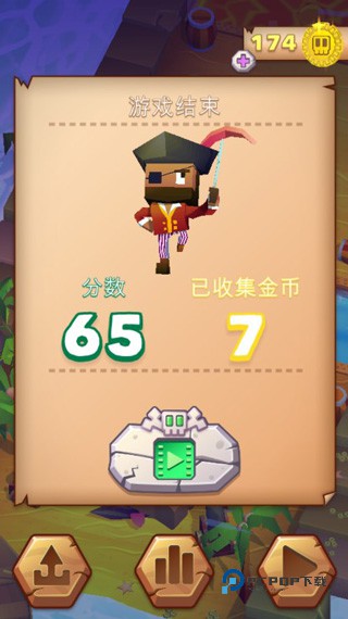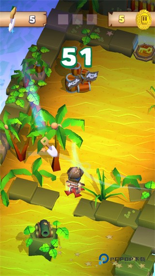 该游戏的操作是采用了点触控式设置,清点游戏屏幕即可让海盗王前进,而左右滑动即可变换行动方向,但不能后退,否则你将粉身碎骨,并且只要你点击的屏幕够快,那么海盗王的移动速度也是变快,这对于游戏中的各大陷阱通过是之至关重要的。这款游戏是考验了玩家的快速反应能力和对时机的把握,虽没有多余的操作步骤,但若想通关,还是会有些许的难度,好啦简单的操作就算介绍完了,喜欢的朋友们就快快着手操作吧。