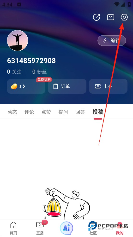 2、然后点击右上角设置