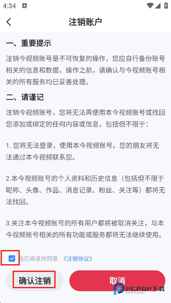 5、然后勾选《注销协议》并点击【确认注销】即可成功注销