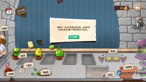 1、早期先买双发和大嘴花,然后就是买三叶草和戴夫,之后买大蒜,再之后就升机和戴夫,再再之后烤阳光菇和辣椒酱二选一,接着买烤盘,最后一定要攒够3000再买饮料机