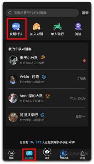 1、在本站下载并安装软件后,选择骑行对讲→发起对讲。