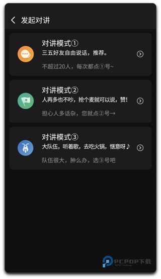 2、选择所要创建的对讲模式,即可创建成功。