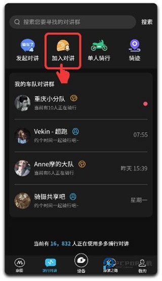 1、选择骑行对讲→加入对讲。