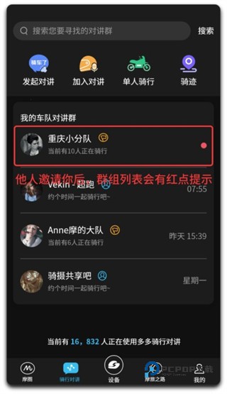 1、他人在邀请你后,你可直接在骑行对讲列表中找到该群组,点击即可加入。