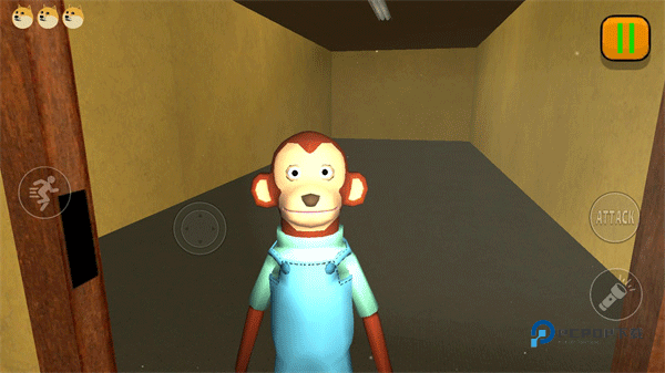 4、当然这期间并不简单,我们每次开门都会遇到不一样的场景,可能是一堵墙,也可能是一只大的柴犬获得一只猴子;