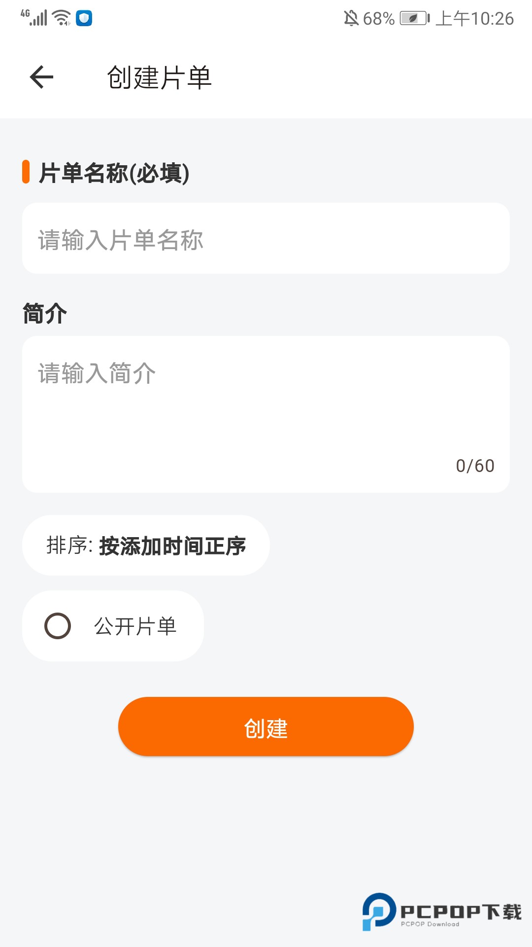 5、我们也可以创建属于自己的片单,输入片单名称和简介后就可以创建了,