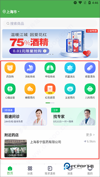 6、另外,其中软件还贴心的将所有的药品进行了分类,以便用户可以更快的找到自己想要的药物