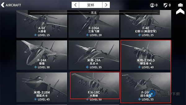 1、进入到游戏之后选择自己想要驾驶的战斗机。