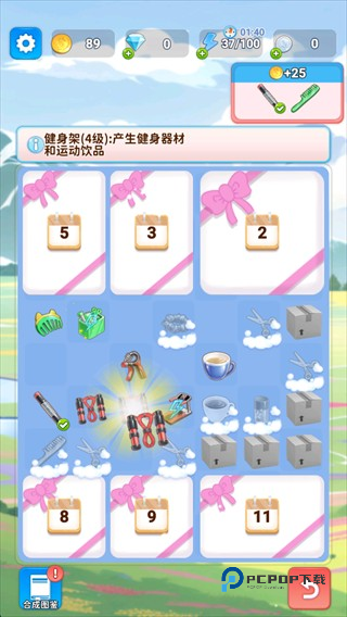 2、通过合成解锁不同物品,收集金币。