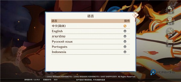 2、默认为简体中文语言,可切换其它的语言;