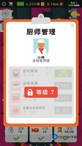 6、随着寿司店不断地升级,你还可以解锁更多厨师。