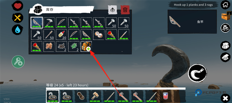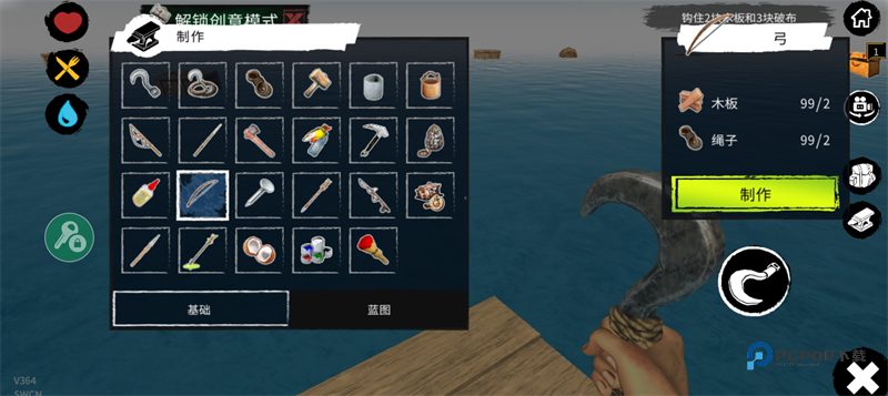 2、获得各种资源后,来改善你的木筏生存环境