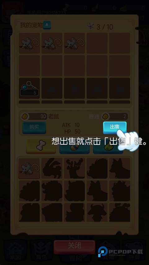 5、如果打败的动物超出驯化数量上限的话,就要将它们卖掉换取货币了——这些货币可以用来购买强化装备以及新的小弟,供你更持久地待在地图中。