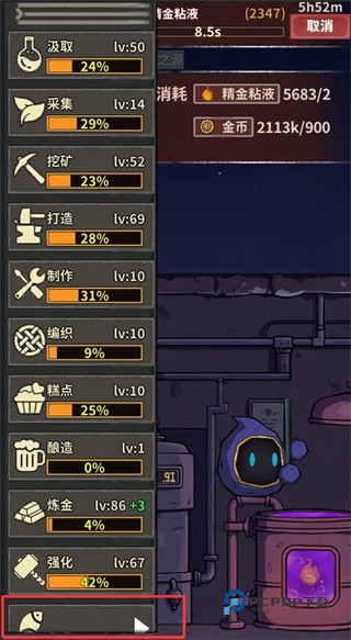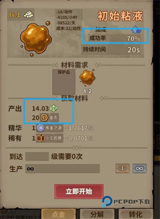 因为游戏是自由交易的市场,且系统目前是没有干预的,而金币(游戏币)的产出如果只靠开箱子(所有职业在进行游戏操作的时候都会掉落)产出的金币是完全不够市场运转的,所以炼金当中的点金就充当了这一角色——印钞机,点金可将游戏中大多数的物品转化为金币,我们以初始粘液为例,我们使用粘液进行点金,2个粘液有70%的概率可以转化为20的金币。这样就实现了金币的无中生有,但是点金普遍经验较低,升级较慢,但是前期可以在启动资金较少的情况下获得较高的收益,并且可以挂机。也算是适合新手的一种职业。不过点金一般是用各种源来进行点金,而各种源前期基本只能靠买。所以新手还是推荐沉淀一下有了启动资金再来玩点金。
