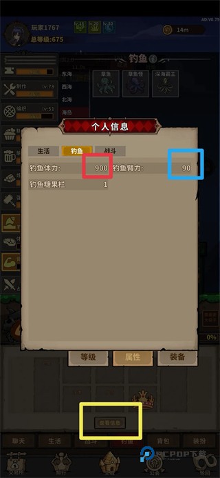 大家刚体验钓鱼系统的时候,会发现有两个属性:体力和臂力。体力关系到你的血条,基础100,每级+10;臂力关系到你的攻击力,基础10,每级+1。比如:我80级的时候,裸装900血,90攻击。这两个属性中,体力几乎是没用的,臂力才是你更需要关注的属性。具体原因我们稍后分析。