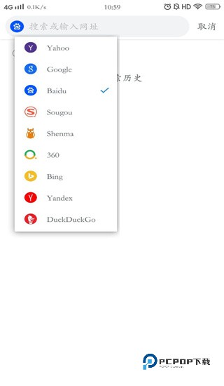 2、点击搜索栏可以输入网址,或者切换搜索引擎。