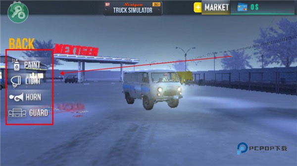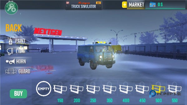 3、这里有各种各样的卡车,你可以选择一种,5种不同的卡车类型,你可以自定义和升级,完成各种运输任务,获得奖励。