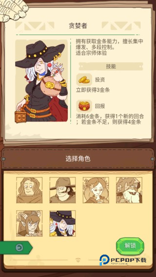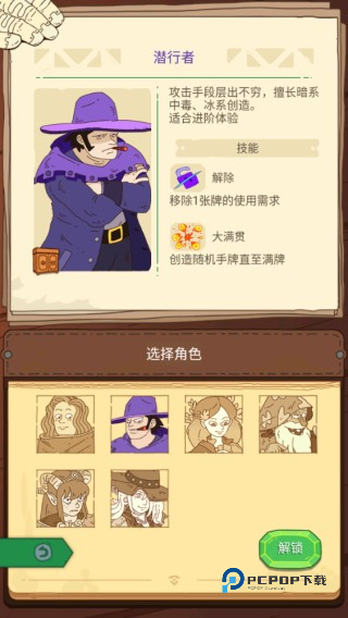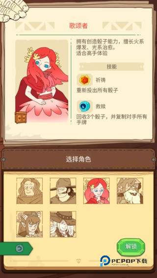 除了卡牌以外还需要解锁不同角色,每个人物都有自己的技能,利用优势来进行冒险;