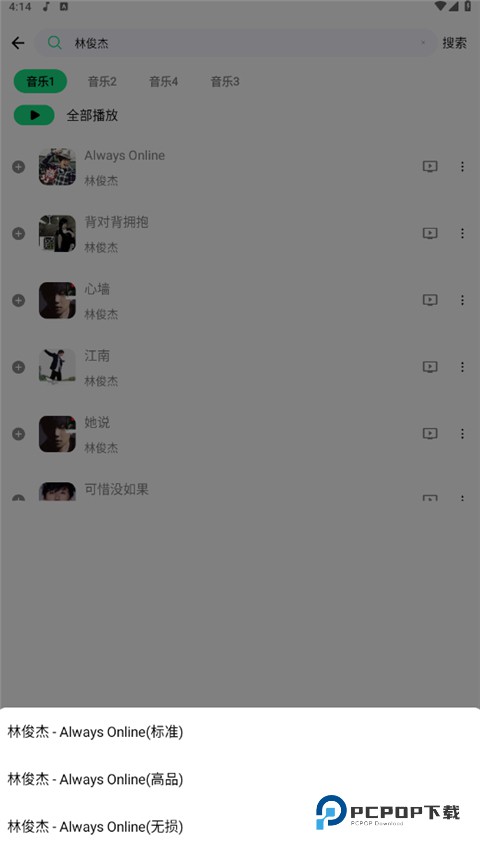 1、搜索歌手或者歌曲点击3个点选择下载。