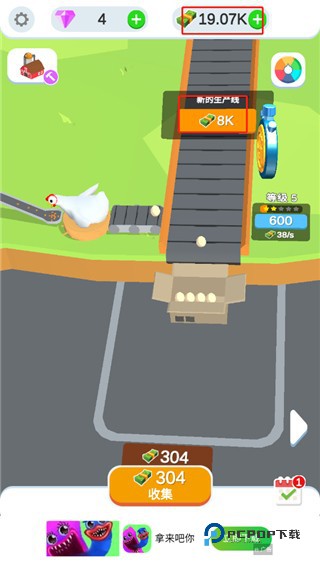 3、获得一只母鸡,这样就相当于获得一条生产线,母鸡产生的鸡蛋将会直接成为玩家的收益;