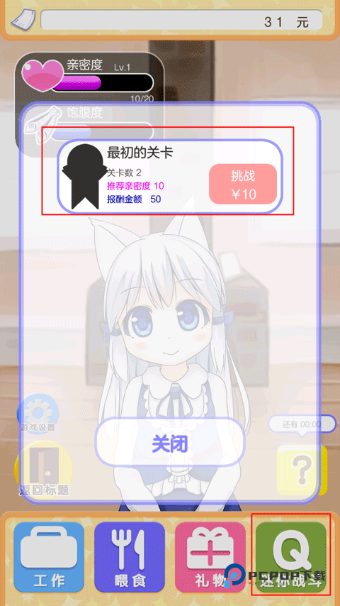 这款游戏总共分为工作、喂食、礼物以及迷你战斗这几种玩法。