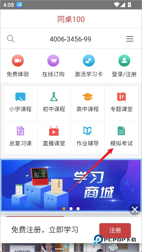 1、打开应用,进入首页后找到并点击“模拟考试”功能。