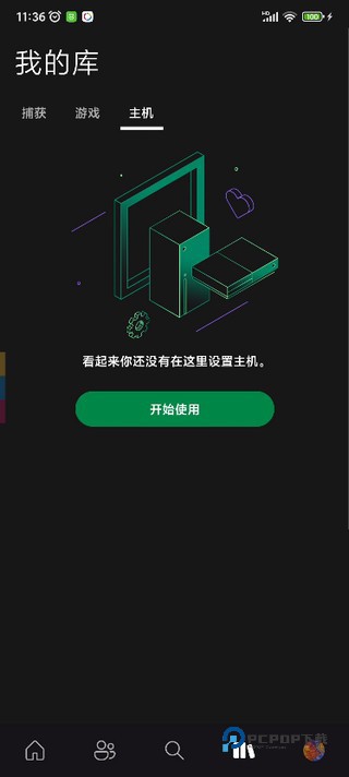 2、然后“我的库”这里就会出现你玩xbox游戏时自动上传的一些成就截图之类,但是还没绑定主机,点击开始使用设置主机