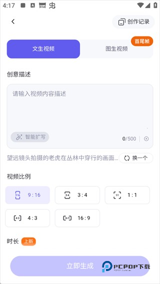 3、选择你喜欢的模版,提供两种创作模式【文生视频、图生视频】描述内容点击立即生成即可